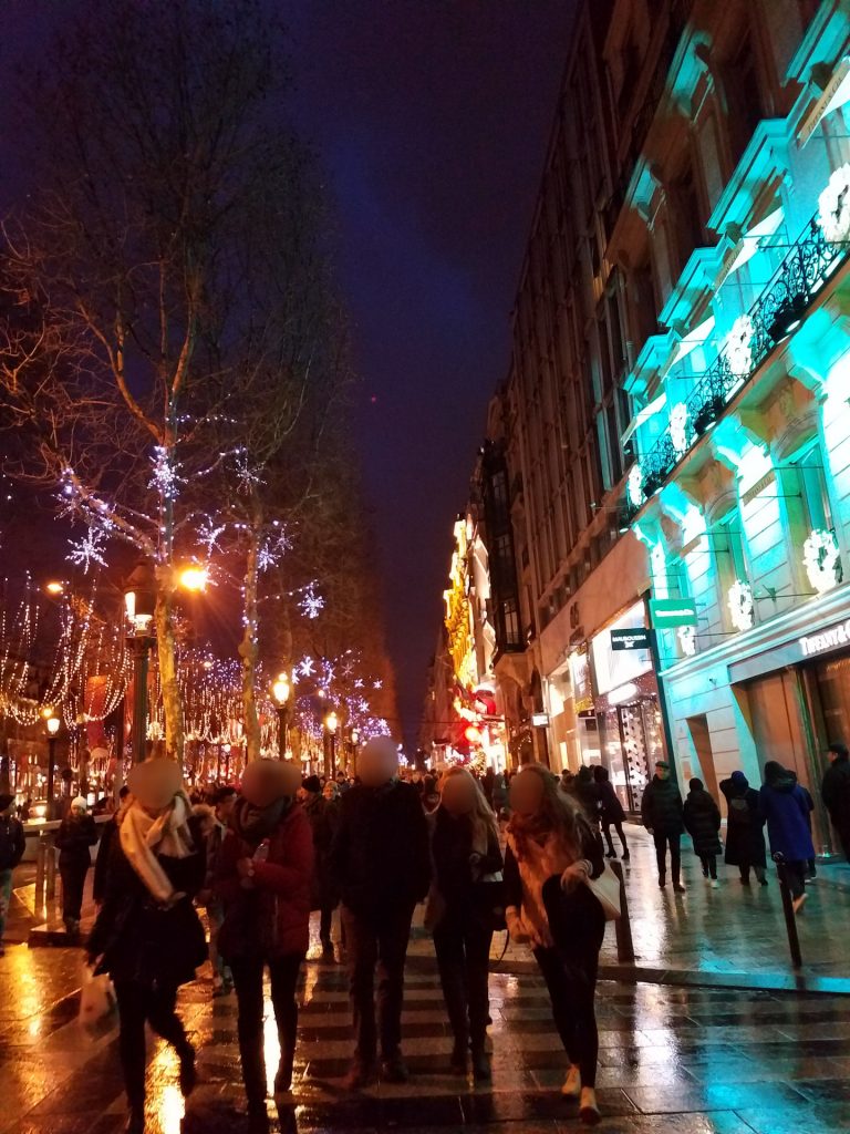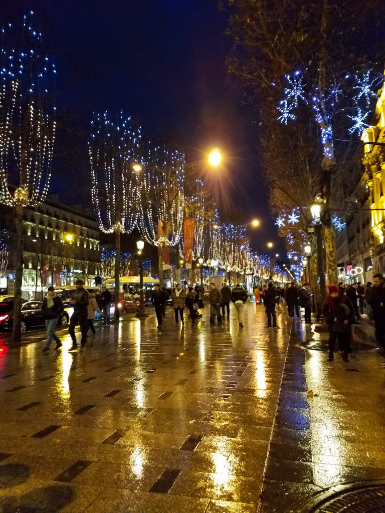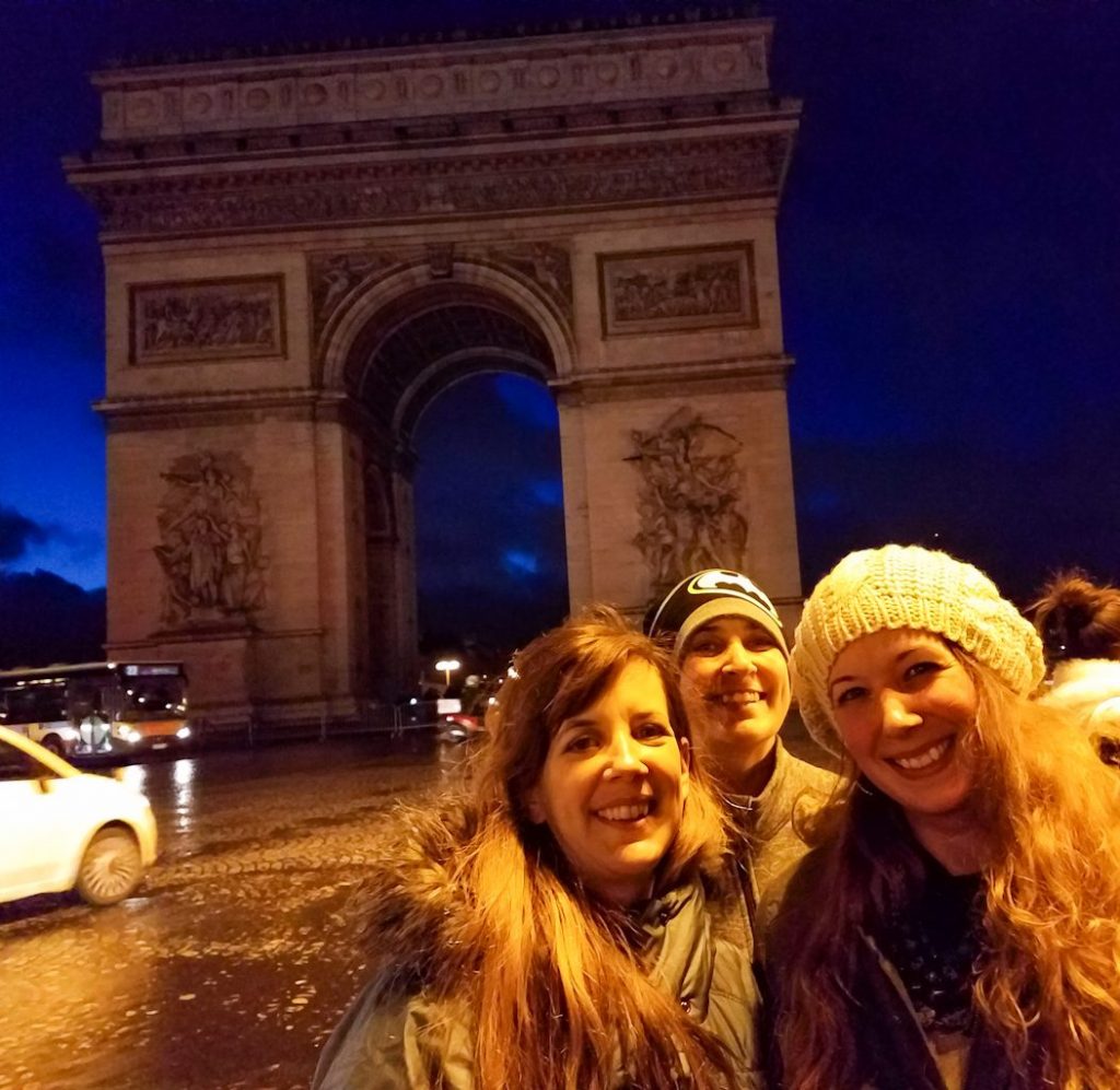 I knew Anthea lived in #Dijon, which is east of Paris, and I wasn’t sure if it was possible for her to get out to Paris that quickly for a holiday. But what a special gift, she arranged to be in Paris so we could finally meet face-to-face for the first time! On the evening of New Year’s Day in 2018, my sisters and I visited the Jardins des Tuileries, we drank vin chaud (hot wine) at Place de la Concorde, and then we strolled down a rainy Champs-Élysées under the twinkling holiday lights that glistened in the puddles on the sidewalk. The buildings were lit up with lights, everything looked like it was glowing. We reached the Arc de Triomphe at dusk and tried to take photos from across the street despite the hectic traffic in the background. The site itself was closed for the #holiday, so we planned to meet Anthea in the tunnel below.